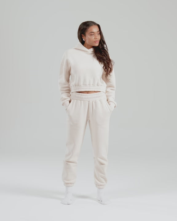 Comfort Joggers are the comfiest pants you’ll slide into. These high-waist joggers pants are your best friend to wear daily, inside and outside. A heavy elasticated waistband with tonal tipped drawstring to adjust, elasticated ankle cuffs and side pockets elevate these joggers. Fabricated from heavy fleece fabric for that extra soft, cozy and luxe feeling. Pair up with the matching Cropped Hoodie and Crew Socks for an insanely comfortable and put together look.