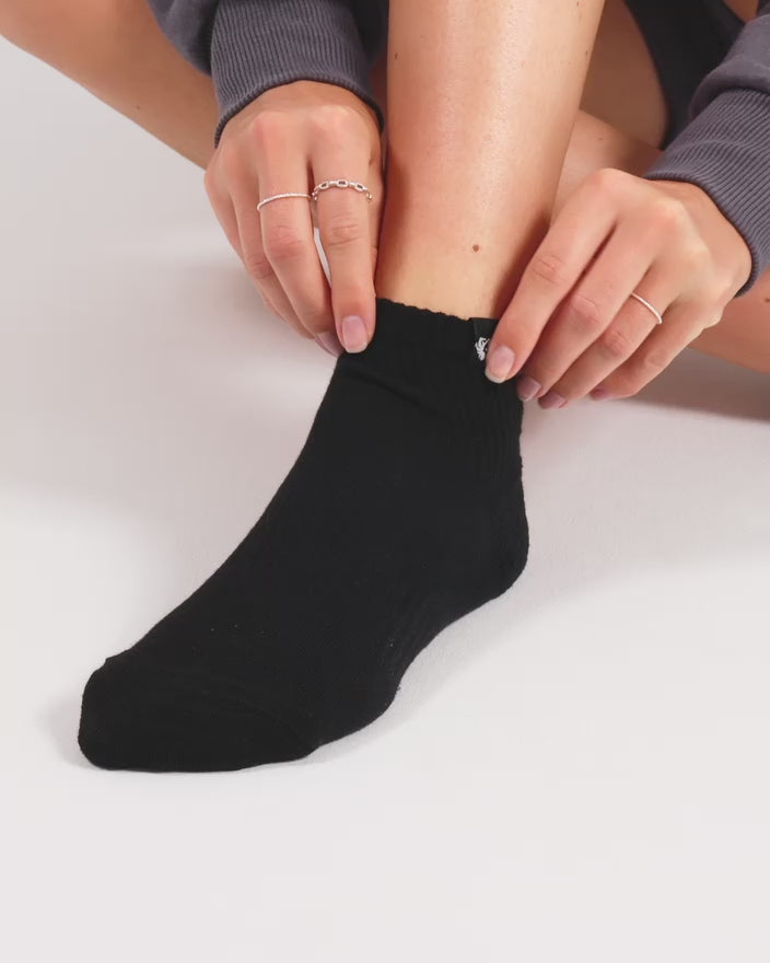 بفضل خامتها القطنية الناعمة خفيفة الوزن، توفر جوارب كوارتر الراحة قابلية التهوية. فهي تتميز بالدقة في التصميم علاوة على البطانة الإضافية مكان الأنامل والكعب والتصميم المضلع الذي يضمن ثبات الجورب سواء على مشط القدم أو الكاحل. ولأنها مصممة لجو أكثر دفئا، فستضمن هذه الجوارب لقدميك الترطيب والملمس الخفيف. يمكنك توليفها مع منتجاتنا من أطقم كومفروت الخفيفة الوزن وتألقي بإطلالة مميزة طوال موسم الصيف. متاحة باللونين الأسود والأبيض